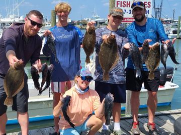 Spend the day in the ocean. We typically fish between 3 to 15 miles offshore. This trip is weather sensitive. Possible fish you could catch are Flounder, Triggers, Spades, Sea Bass, Mahi, Blue Fish, Cobia, and many more.