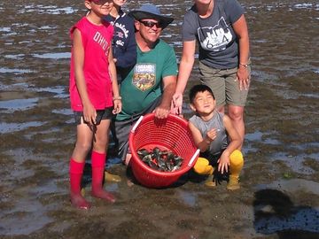 A relaxing, yet exciting trip. Great for the whole family. Enjoy fishing, crabbing, clamming, dolphin encounters, wild ponies, sea turtles, and other unusual sea creatures. We clam on an exposed mud flat at low tide. We provide socks. This is a 4hr trip and is dependent on the tide. Online booking is NOT available for this trip.